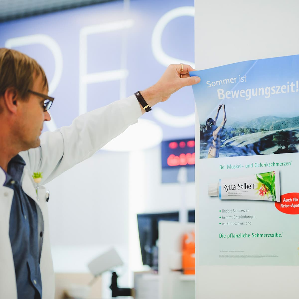 Vaaleat sävyt, kuten haalea keltainen tai persikka, voivat tuoda lämpöä steriilin apteekkiympäristön rinnalle. Ne sopivat erityisesti hyvinvointituotteiden ja kauneudenhoidon osastoille. Näiden värien käyttö luo kutsuvan ilmapiirin ilman, että ammattimainen vaikutelma kärsii.