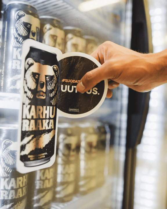 • Käyttö: Automaattien etulasit. Palvelupisteen henkilöstö kiinnittää tarran lasin sisäpuolelle kuvapuoli ulospäin. Käytetään uusissa tuotelanseerauksissa ja kampanjatarjouksissa.